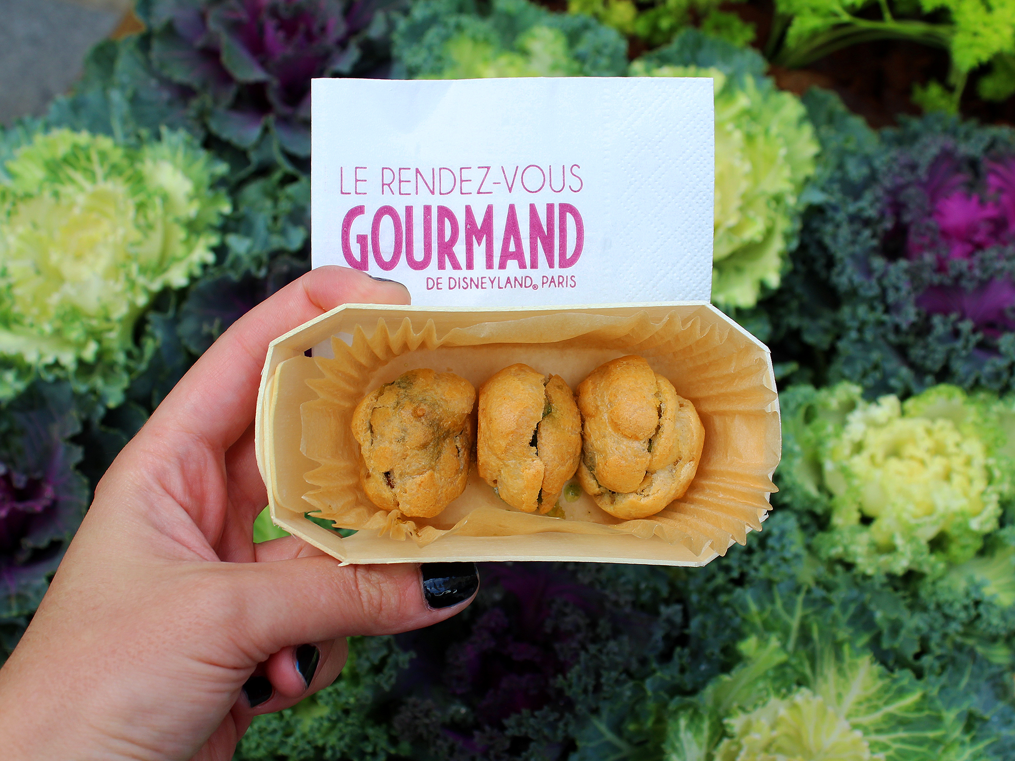 Le chalet bordelais comme le bourguignon était très appétissant. Là encore j’aurais voulu tout tester, mais cela aurait été compliqué en termes de capacité abdominale comme de budget ! Le hachis était très bon, généreux et fumant (détail qui n’en est pas un quand on le déguste sous une pluie battante, protégées par un auvent anecdotique le temps de répondre à une enquête de satisfaction de Disneyland Paris) ! Je regrette de n’avoir pas goûté le gâteau basque ainsi que les cannelés, il est au passage amusant de penser que si les stands avaient été disposés dans un ordre différent on aurait peut être choisi nos plats autrement.