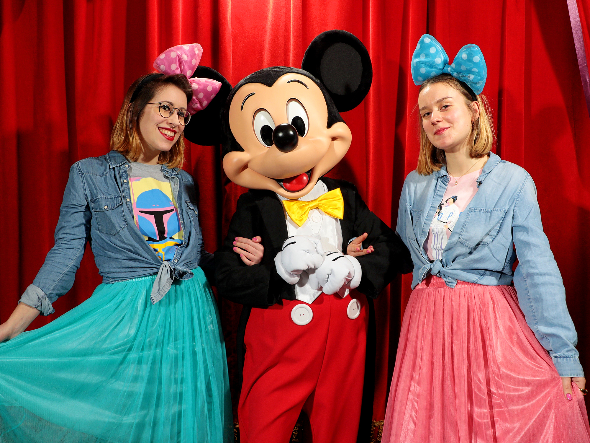 Notre épique petit déjeuner englouti et quinze cafés au lait plus tard, nous sommes remontées dans notre chambre gonflées à bloc. Après nous être douchées nous avons fièrement revêtu nos tenues coordonnées, nous sommes maquillées et coiffées de nos serres-tête Minnie, et avons enfin passé les portes du Newport avec l’impression d’être un trio de reines de beauté descendant d’une limousine pour rejoindre leur bal de promo (sans exagérer, notre fierté crevait le plafond). Mais quelques secondes plus tard la pluie battante s’est chargée de nous ramener à la dure réalité de la météo. Nous allions ressembler à des épouvantails si je n’achetais pas bien vite un parapluie ! C’est ainsi la première chose que nous avons faite quand nous sommes arrivées dans le parc Disneyland. Bien décidées à montrer à la tempête qu’on ne lui laisserait pas pourrir notre groove, nous avons empoigné ce début de « Park Day » par le col en utilisant nos premiers Fast Passes hôtel à Star Tours. Zouzou et moi espérions enfin tester les séquences sur Crait et Jakku, mais ce sera pour une autre fois ! Nous avons été frappées par l’affluence sur le parc, même pour un samedi, surtout vues les conditions climatiques affreuses. Mais c’était la St Patrick, et nos voisins d’outre-Manche étaient présents en nombre sur le resort ! En l’absence de Meet and Greet de Mickey et Minnie en costumes irlandais, notre intérêt pour les autres animations dédiées au saint patron a malheureusement fondu sous la pluie. Nous devions rencontrer dans l’après-midi mon amie anglaise Lucy, avec qui nous nous suivons en ligne depuis près de 10 ans, mais que je n’avais encore jamais rencontrée. En route pour rejoindre Frontierland où nous devions nous retrouver, nous l’avons en fait croisée par hasard à la sortie de Discoveryland où elle se promenait avec sa mère. L’occasion faisant le larron, nous avons profité de ce coup du destin pour faire plus ample connaissance dans la file Fast Pass de Buzz Lightyear Laser Blast, pour le plus grand bonheur de Lucy dont Toy Story est le film favori.