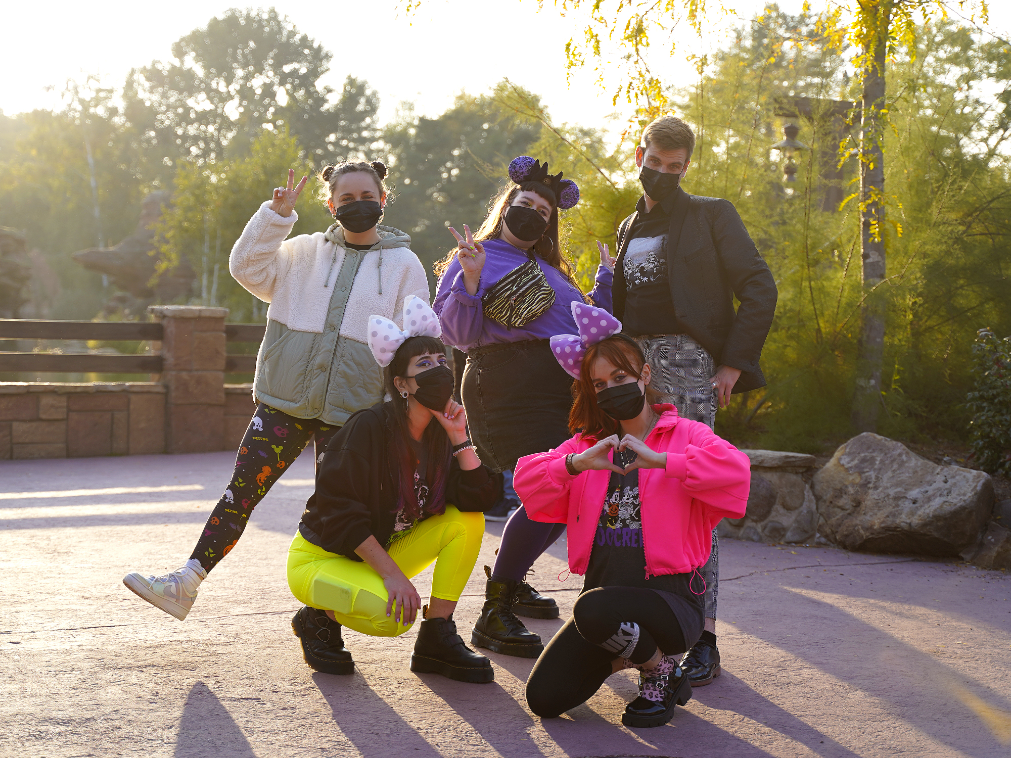 Cette année je vais faire un compte-rendu de saison économe en paroles mais riche en photos ! En effet, une image valant mille mots, voici une bonne dizaine de photos plutôt qu’un long discours pour vous montrer nos magnifiques tenues d’Halloween édition 2021 ! Deux looks différents dont une coordination corail impeccable pour Romi / Flavou et moi à notre première visite ensemble; suivie d’un dress-code freestyle chamarré aux accents fluo que nous avons porté à cinq pour l’anniversaire de Flav et Bourdon. Incontestablement d’un de nos meilleurs looks d’Halloween ever si vous me demandez mon avis (mais j’espère surtout lire le vôtre en commentaires) ! Mais n’oublions pas le style du parc Disneyland lui-même, plus beau que jamais avec ses citrouilles et fantômes flattés par la lumière chaleureuse de l’heure dorée.