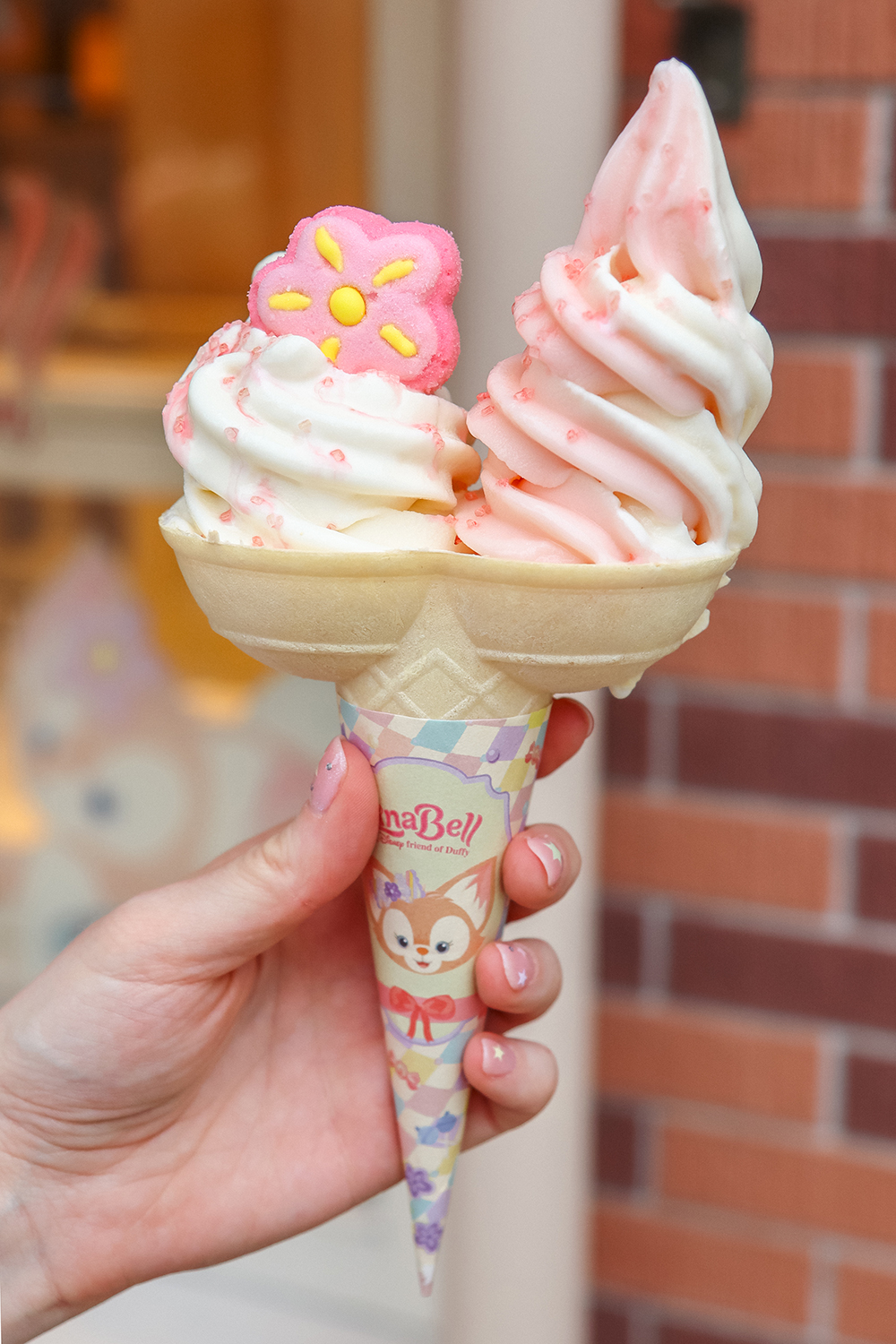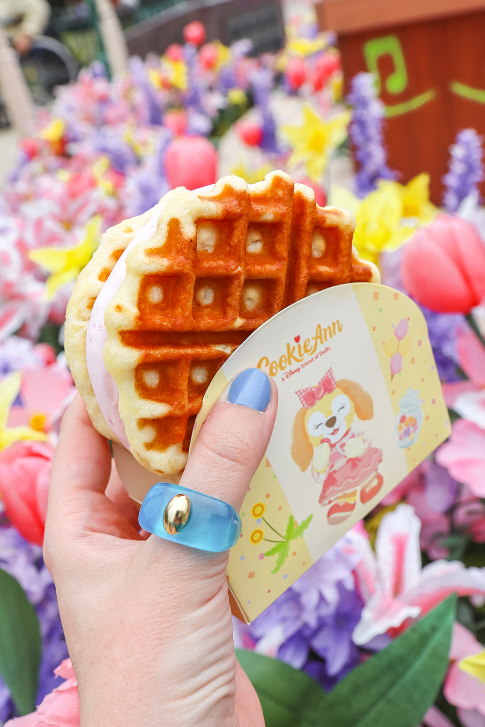 Saison Duffy oblige, nous avons également craqué pour plusieurs douceurs inspirées de Duffy ! J’ai pour ma part gouté un donut Duffy ainsi qu’une gaufre fourrée à la guimauve hommage à Cookie Ann, tous les deux très bons et un peu décadents. Quant à Mira elle a choisi de tester cette très mignonne glace aux couleurs de Lina Bell.
