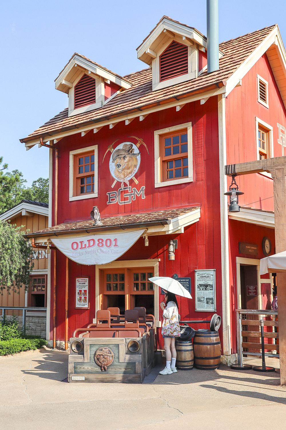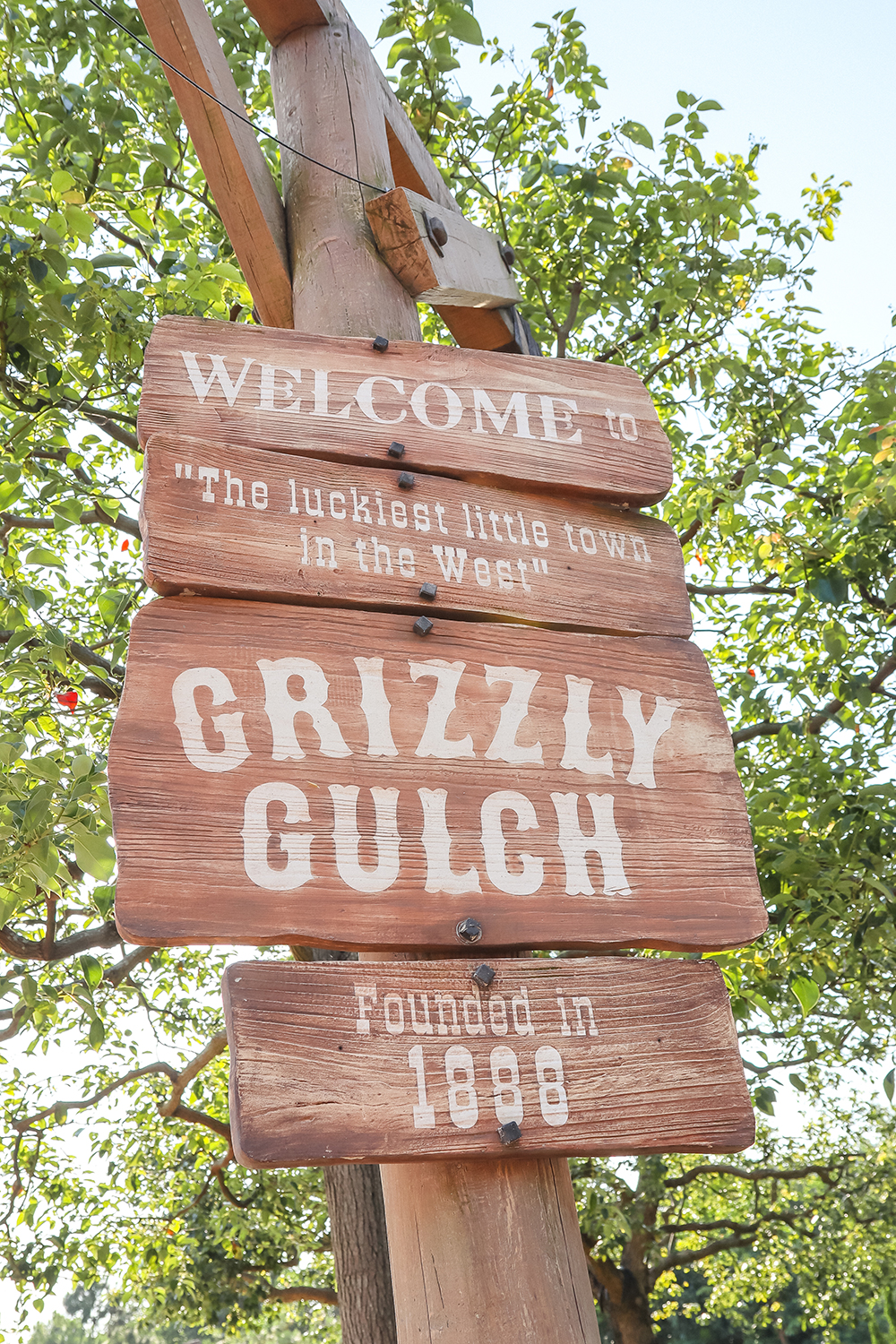 Le land suivant de notre promenade à Hong Kong Disneyland est Grizzly Gulch ! Équivalent de Frontierland que l’on trouve dans la majorité des autres parcs Disney, la backstory de Grizzly Gulch le situe en Californie pendant la ruée vers l’or. L’histoire raconte que cette bourgade fut fondée le 8 aout 1888, autrement dit le jour le plus chanceux du mois le plus chanceux de l’année la plus chanceuse. Malencontreusement construite sur un champ de geysers, la ville pas si chanceuse que ça au final vit la bonne fortune enfin se manifester, le jour où le Capitaine Phineas Cosgrove remarqua une famille de trois ours se gratter contre des grosses pierres révélant de l’or sous leur surface.