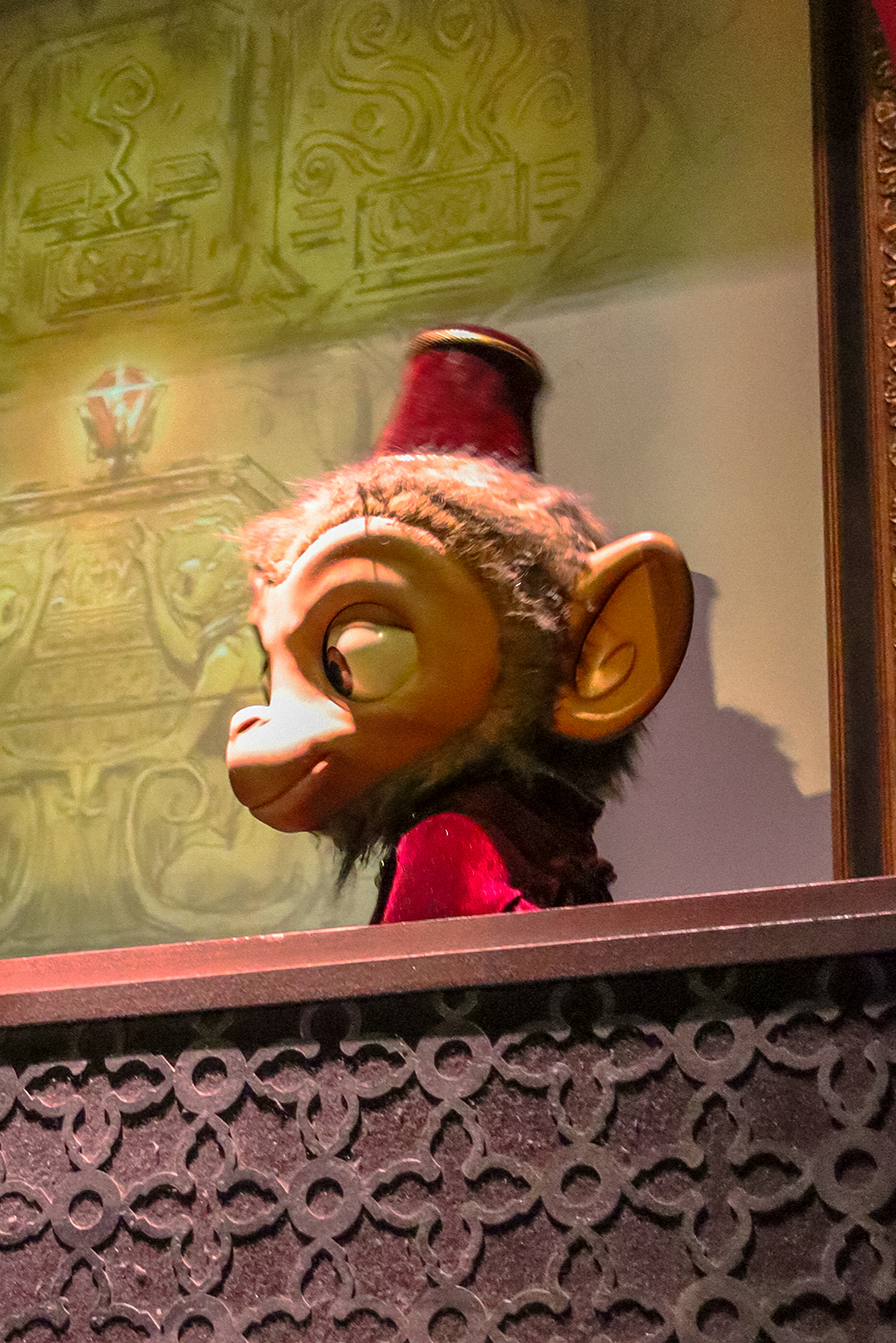 L’attraction Mystic Manor était certainement celle que tout notre groupe était le plus impatient de découvrir, et nous avons mis un point d’honneur à la rider dès notre premier soir, malgré notre entrée assez tardive sur le parc. La façade mythique de l’attraction était en rénovation et bâchée pendant notre séjour, ce qui nous a beaucoup attristés, mais au moins nous avons pu rider et c’est le principal (l’attraction est actuellement en rénovation alors certains first timers actuellement à HKDL ont en ce moment moins de chance que nous l’an dernier) ! Nous l’avons faite plusieurs fois au cours du séjour et je crois que plus nous l’avons ridée, plus mon amour pour elle grandissait ! L’histoire de cette attraction raconte que Lord Henry Mystic s’est établi dans Mystic Manor, où il entrepose sa collection d’artefacts rapportés de voyages autour de la planète, notamment une boite à musique magique capable d’animer des objets autour d’elle si elle est ouverte. C’est bien entendu ce qui va arriver lorsque le singe Albert va braver l’interdiction de son maitre, et ouvrir la boite sous nos yeux nerveux mais excités !