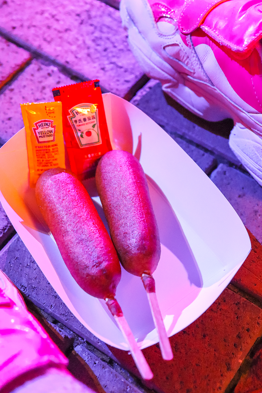 Nous avons également testé quelques snacks sur Main Street U.S.A., un des plus mémorables pour moi étant la paire de corn dogs (pour le coup pas si mémorable) dégustée lors de notre dernière soirée sur le parc, assis avec Guigui sur le trottoir, en regardant les guests s’en aller progressivement jusqu’à ce qu’il ne reste plus que nous et le château au bout de la rue ! Juste magique.